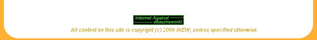 IAEW (Internet Against Ebaum's World) (pronunciation: EEE-AWW) is a website dedicated to ensuring that online criminals such as Eric Bauman, will not be able to steal creative content from a website or it's users.