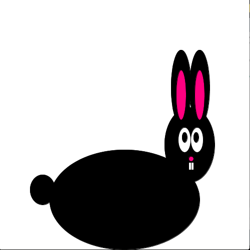 ellipse(250,400,300,200); //Body ellipse(86,380,50,60); //Tail ellipse(380,290,100,150); //Head ellipse(363,175,40,150); //Left ear ellipse(400,175,40,150); //right ear