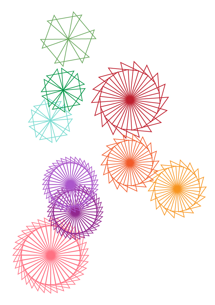 - Click+Hold a corner of the triangle replicates the triangle in the circular bloom.